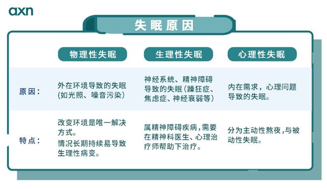 失眠的(de)原因主要(yào)有(yǒu)三種:分(fēn)别是(shì):物(wù)理(lǐ)性失眠、生(shēng)理(lǐ)性失眠、心理(lǐ)性失眠。