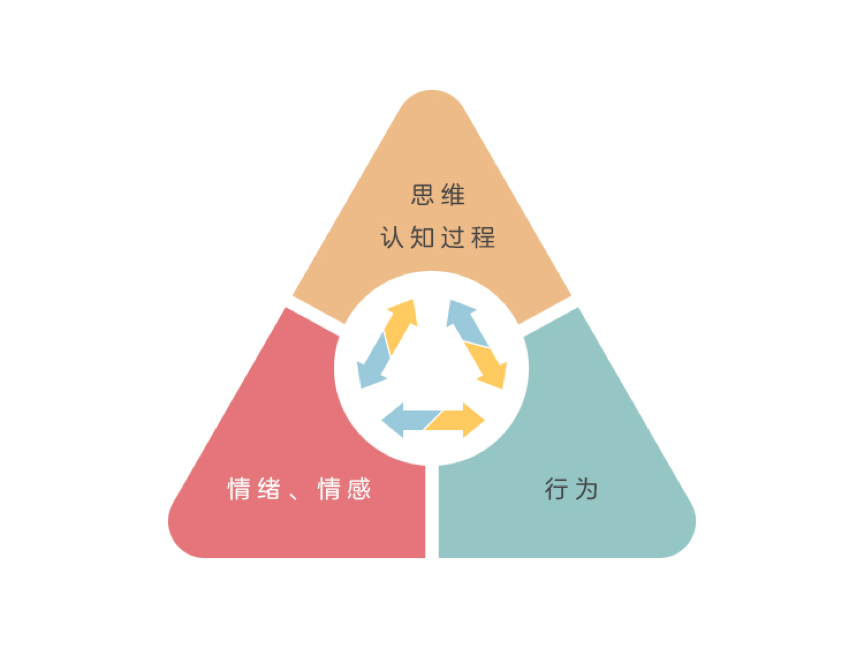 思維、情緒和(hé)行(xíng)為(wèi)彼此互相(xiàng)影(yǐng)響,改變其中一(yī)環即有(yǒu)可(kě)能(néng)形成良性循環。